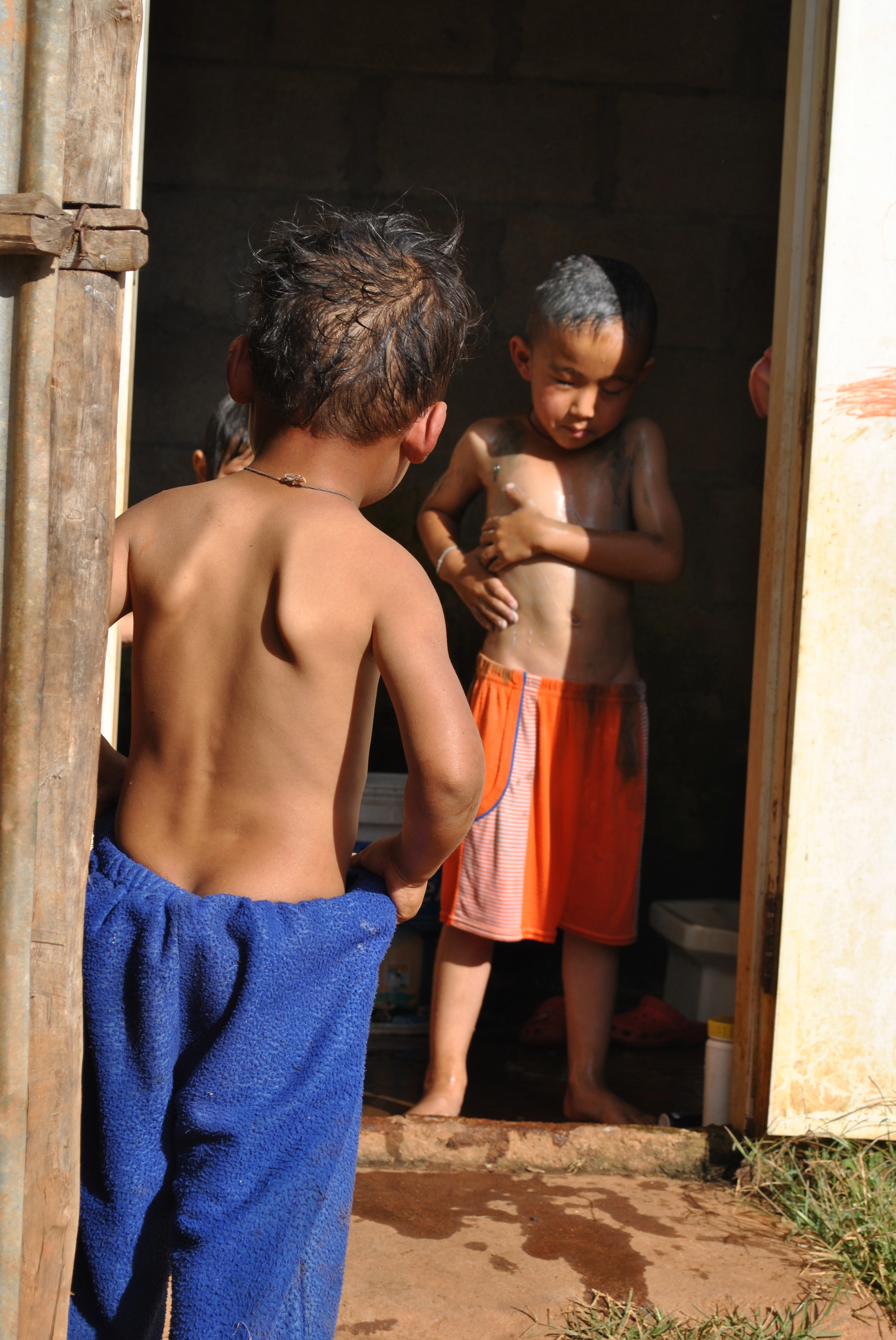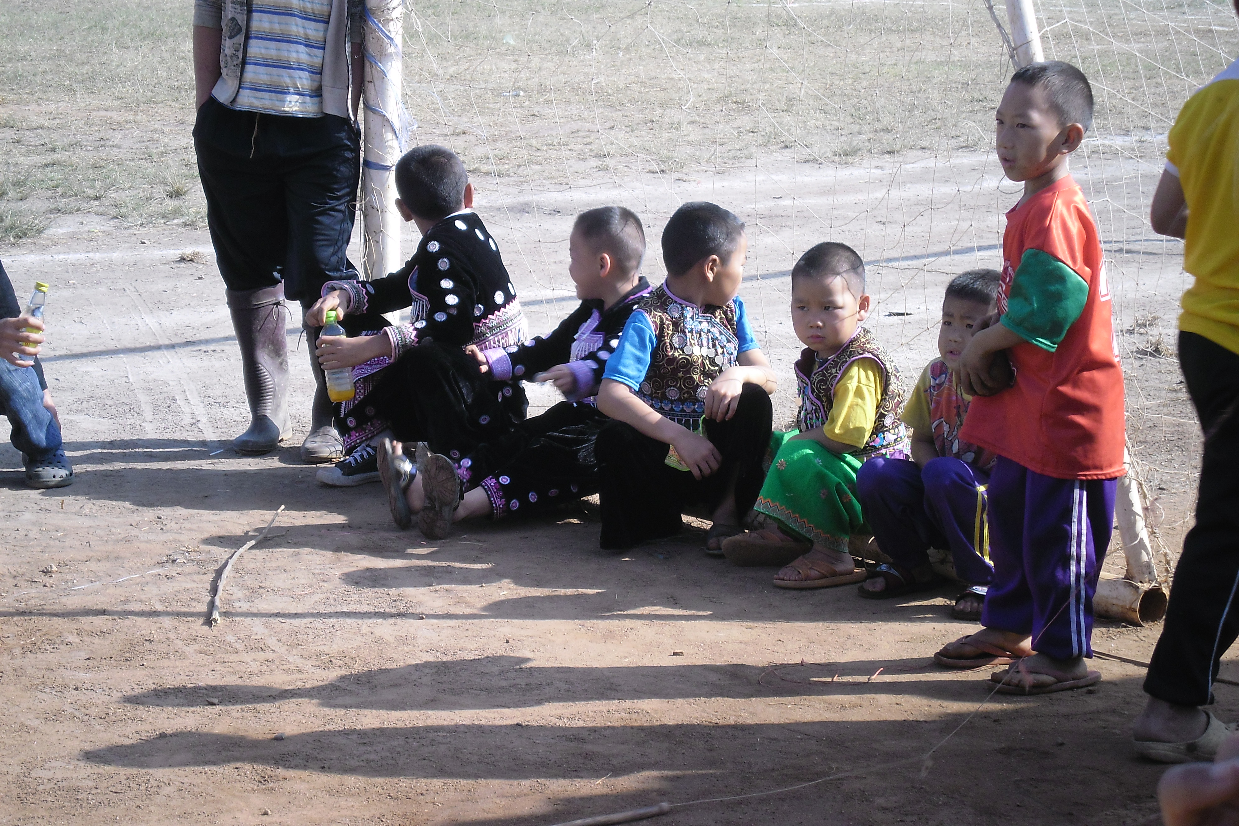 Taking a break after the long walk to the tea fields.Shan kids being shy
