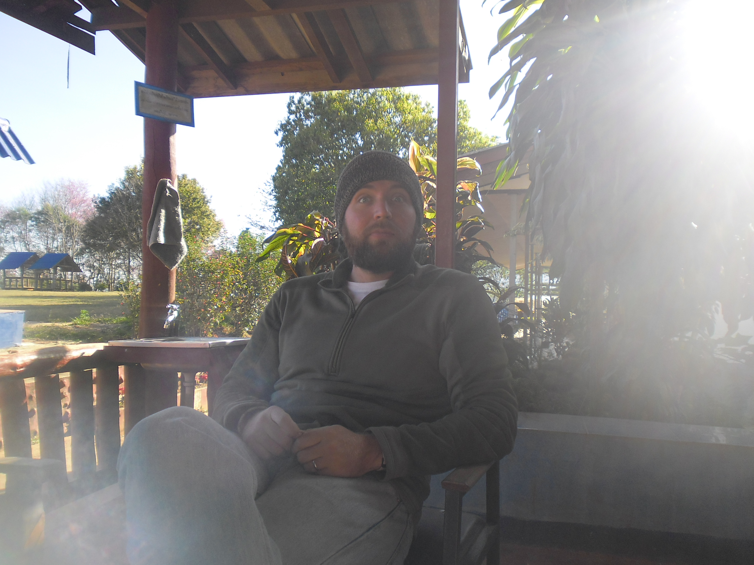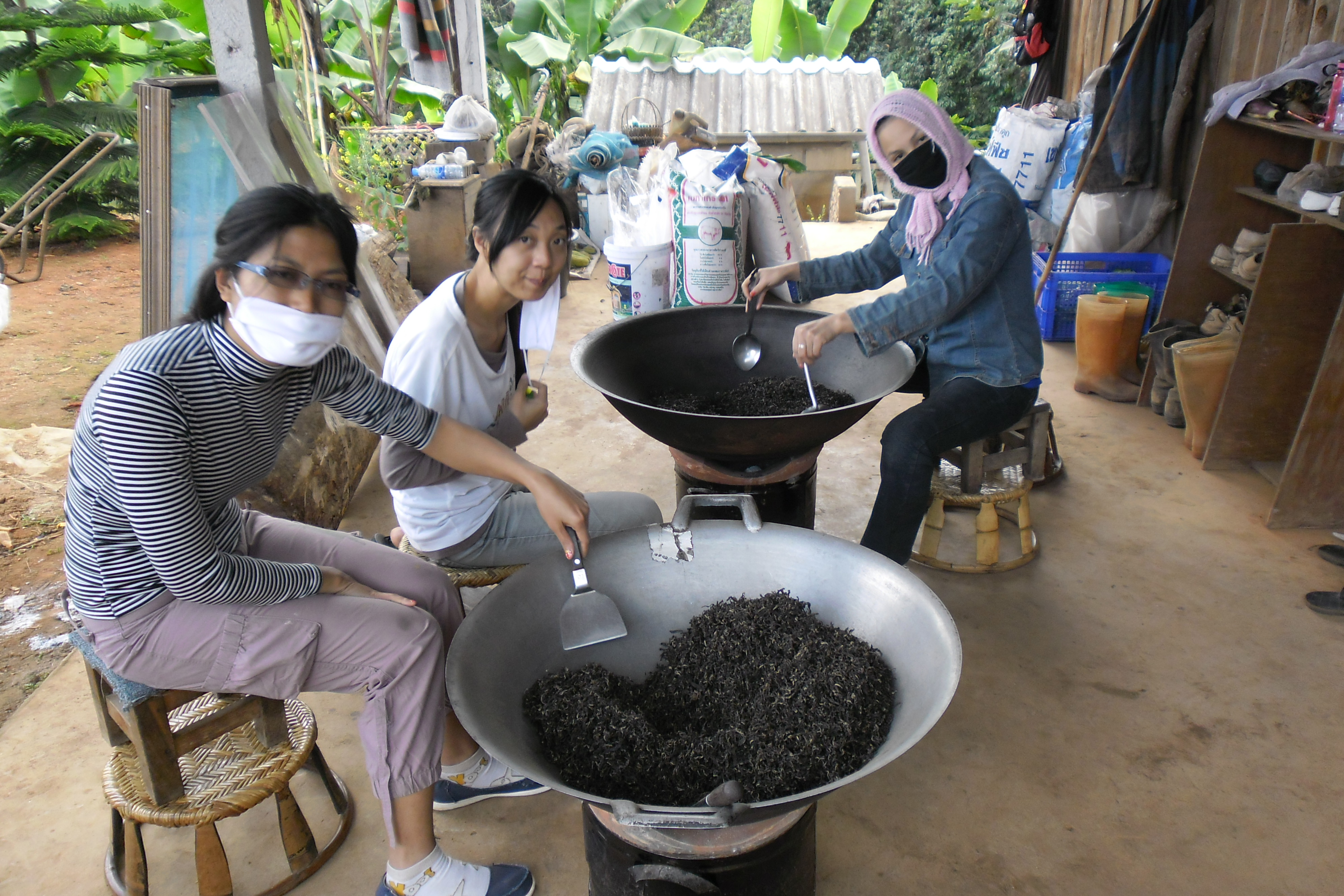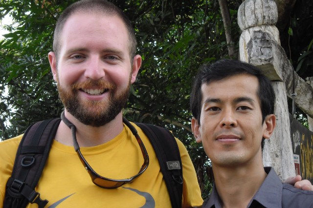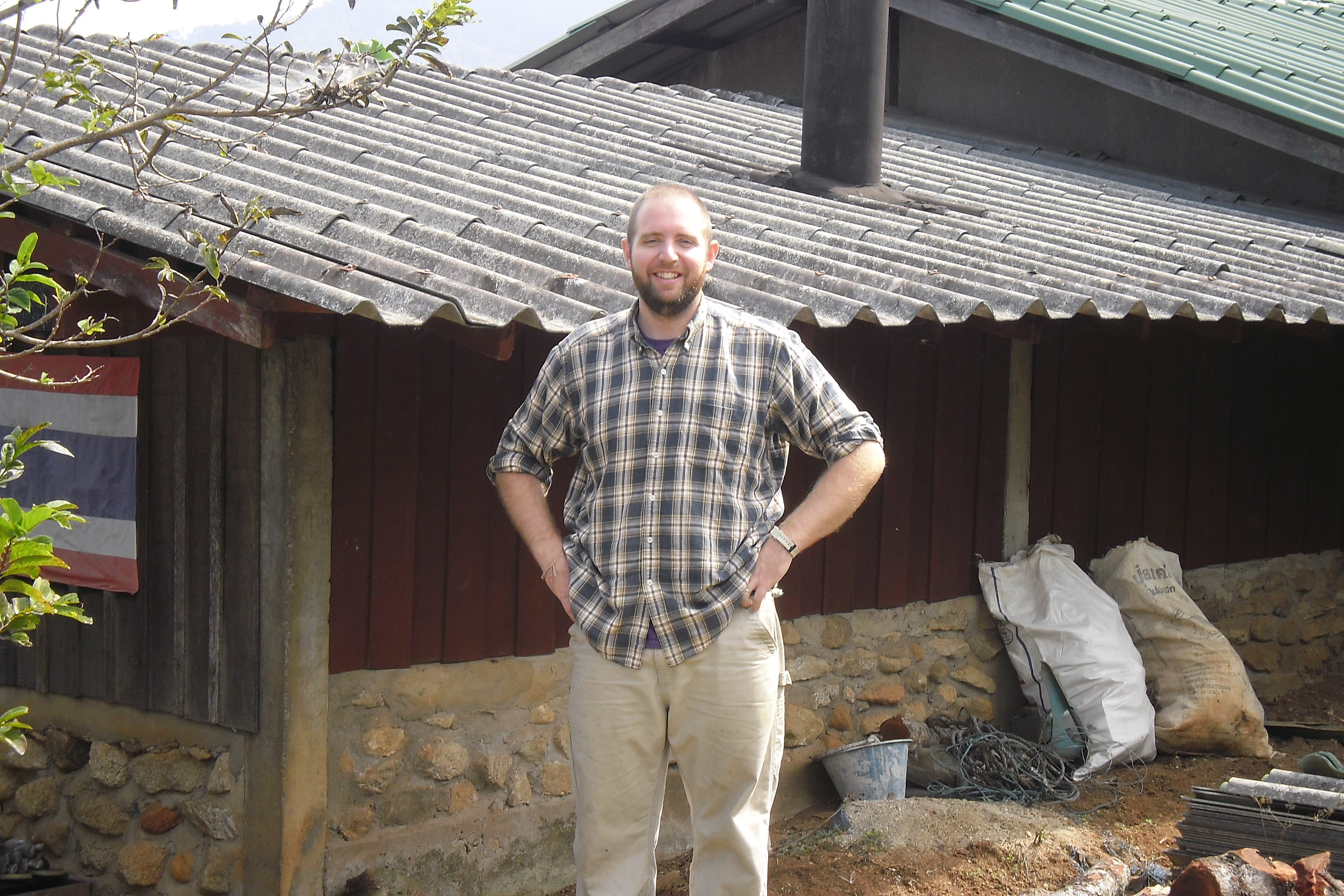 Jen posing for a picRoasting tea leavesTypical Dinner with the teamThe tea fieldsTea field hedge rows post-pruningWhenever I imagined “The Oregon Trail” in real life this is what I imagined. David is very happy to be living hereOur House 🙂WorkingOur room 🙂Thailand – Burma border at Mai SaiDavid and EkDavid at the ‘Golden Triangle”The Golden Triangle – Where China, Thailand and Burma Meet on the Mekong RiverJen at the MekongDavid at the MekongShade tree over the MekongShortcut through a rice-paddy in Chiang Rai–praying for no cobras
