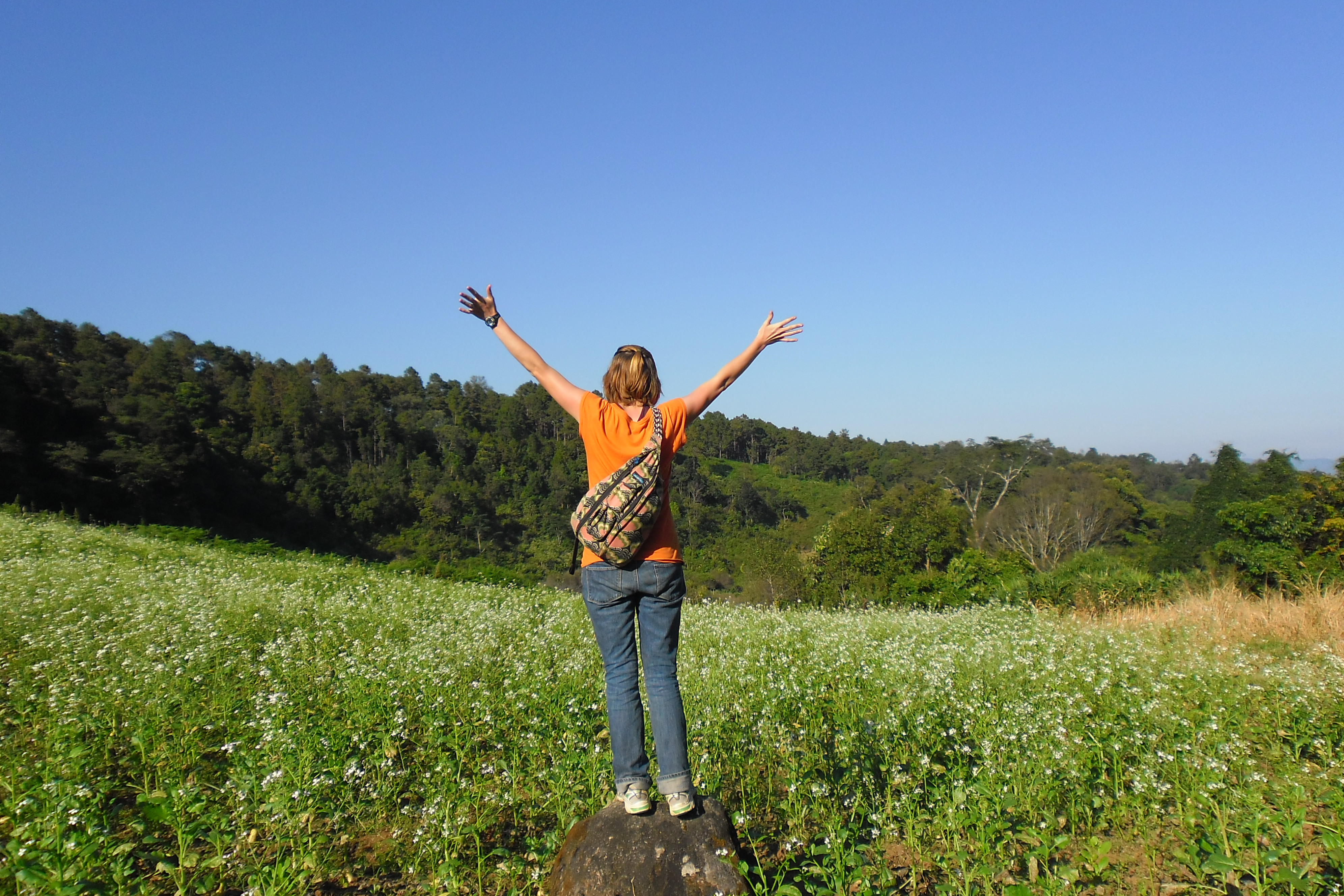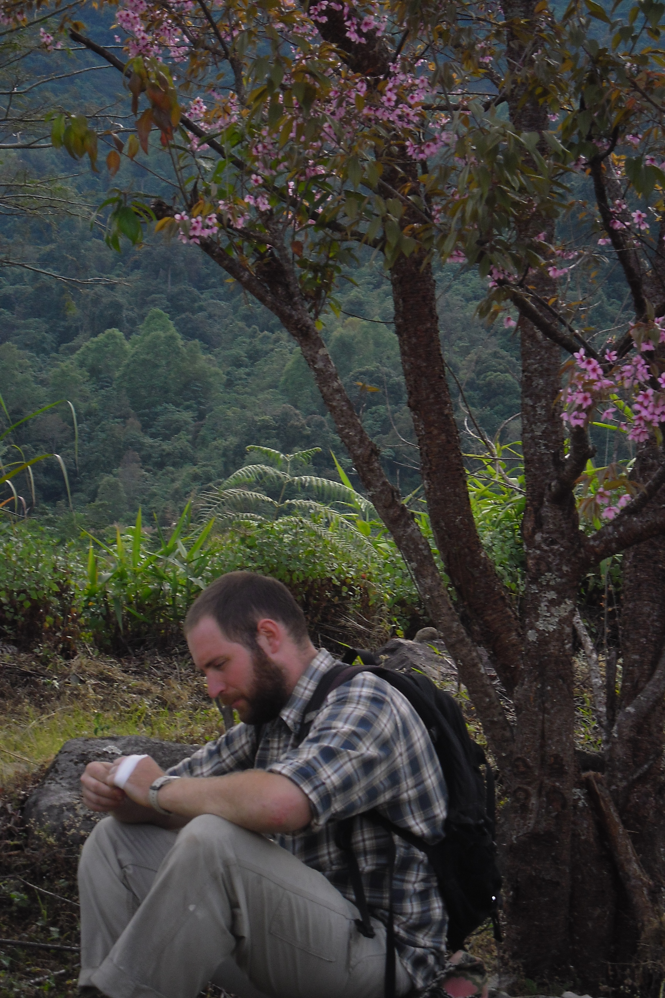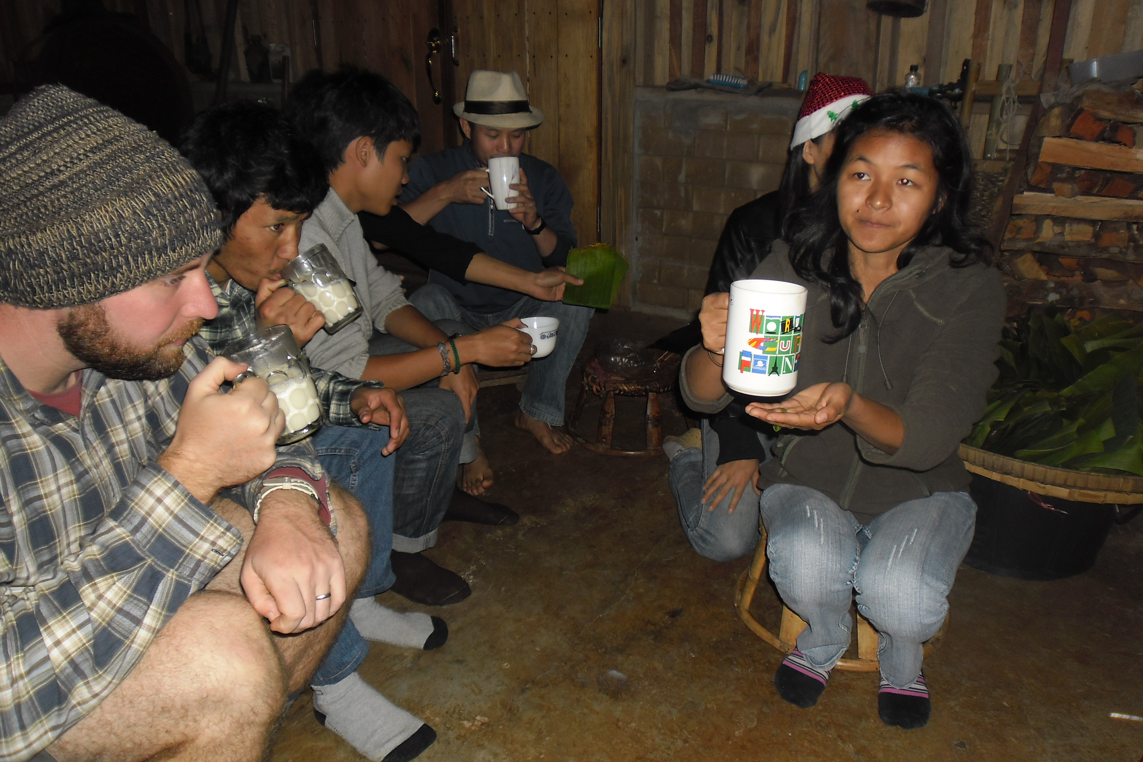 Jen posing for a picRoasting tea leavesTypical Dinner with the teamThe tea fieldsTea field hedge rows post-pruningWhenever I imagined “The Oregon Trail” in real life this is what I imagined. David is very happy to be living hereOur House 🙂WorkingOur room 🙂Thailand – Burma border at Mai SaiDavid and EkDavid at the ‘Golden Triangle”The Golden Triangle – Where China, Thailand and Burma Meet on the Mekong RiverJen at the MekongDavid at the MekongShade tree over the MekongShortcut through a rice-paddy in Chiang Rai–praying for no cobras