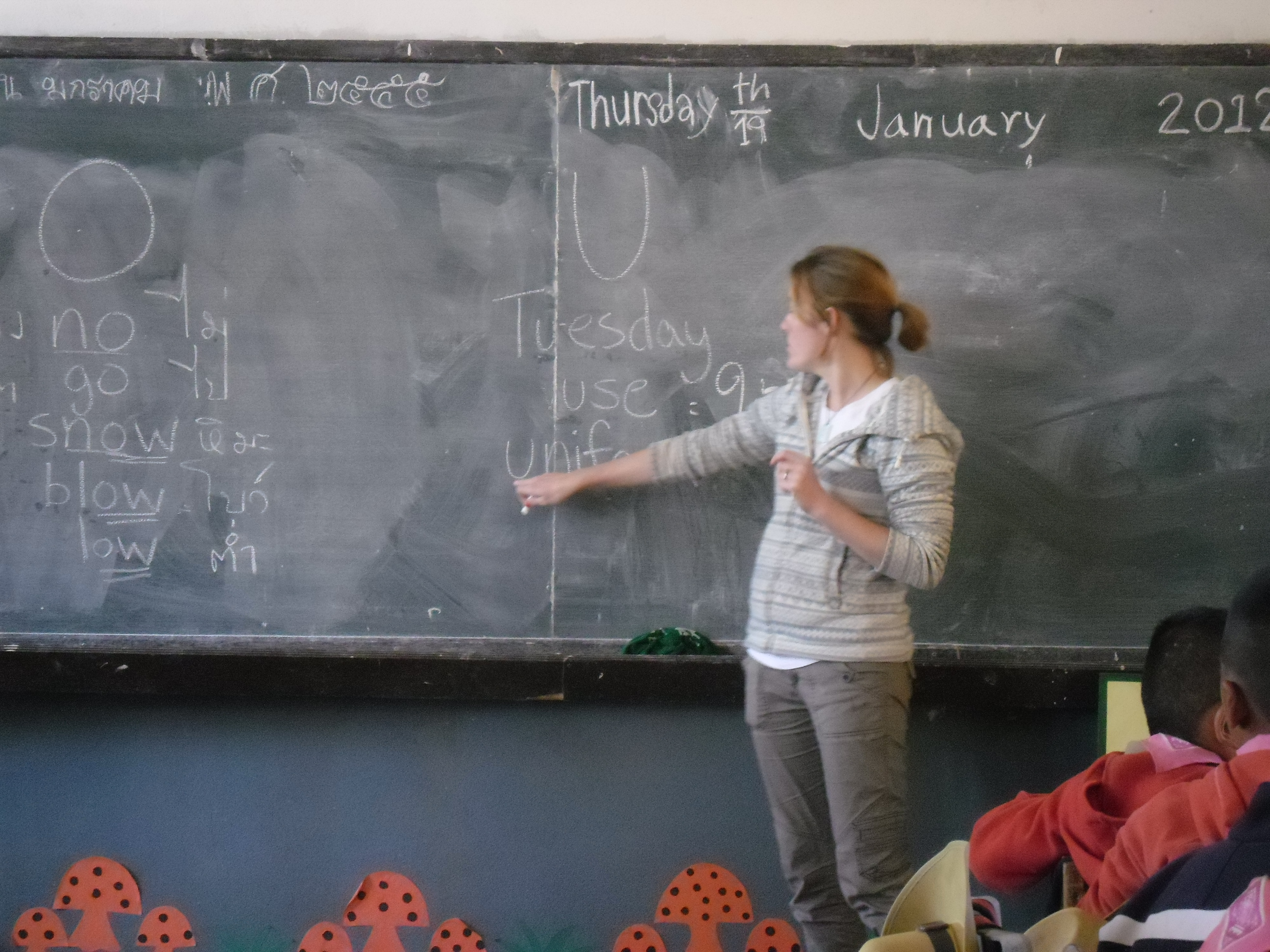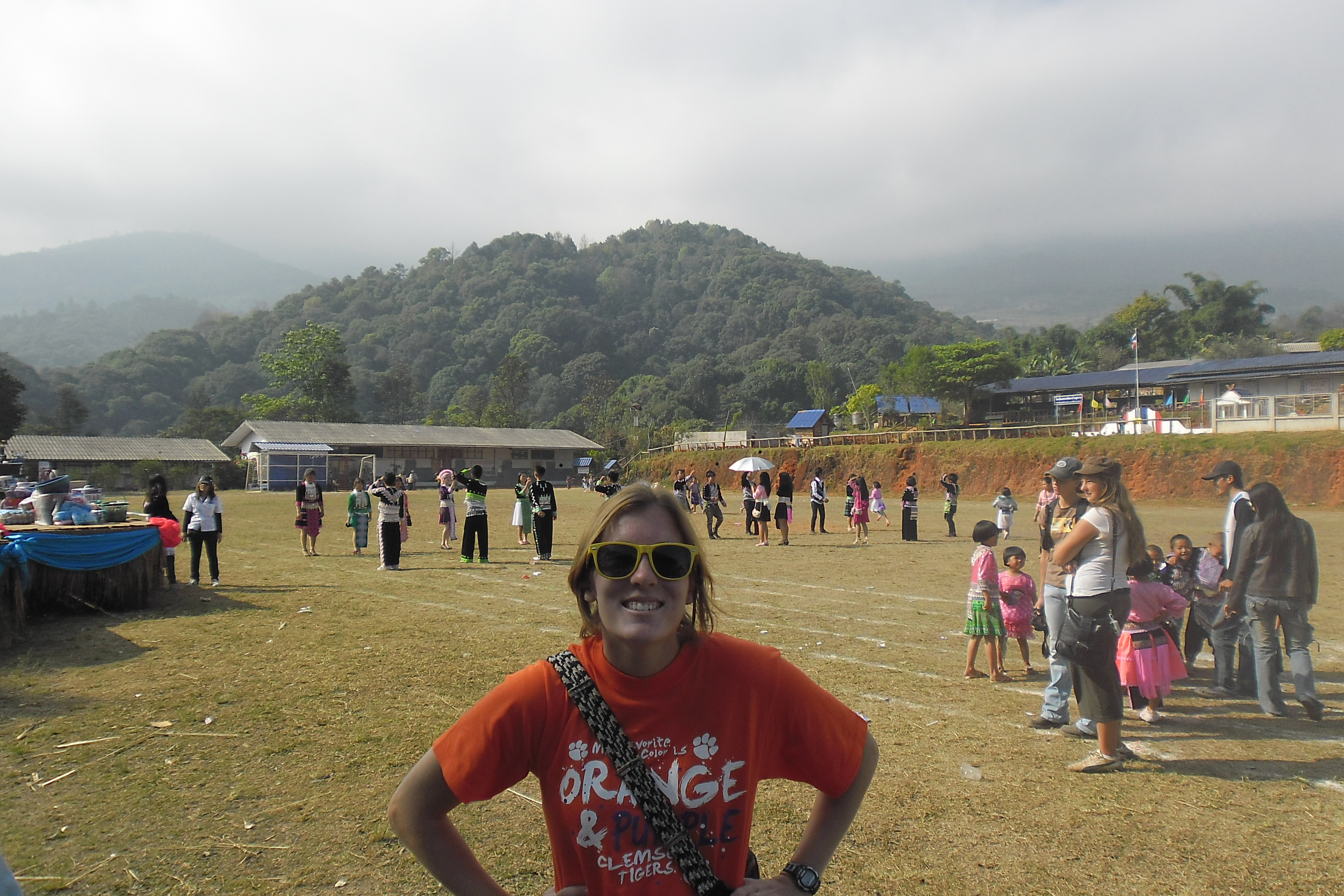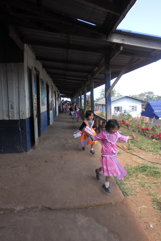 Making lunch with our host familyOne of our host family’s crops: STRAWBERRIESMore tasty strawberriesJen Teaching English in Khun Wang (outreach)“Waiting for the kids to arrive so I can fill their little heads with English”On the way to an assemblyLittle Runners
