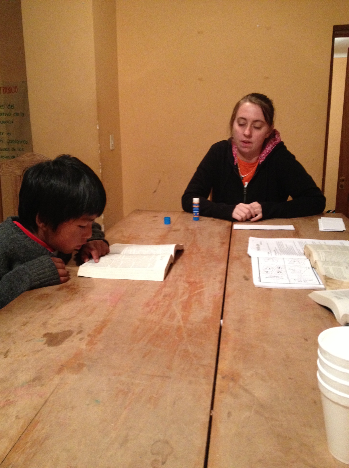 Jen Smith helps Julio (Joel and Elisban’s little brother) read a chapter in Esther