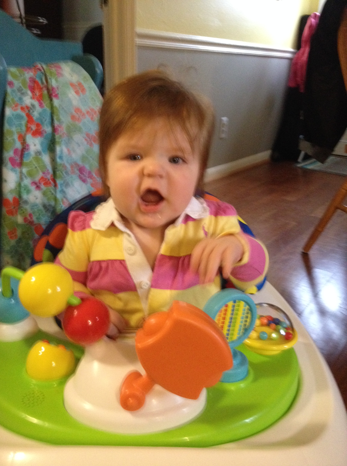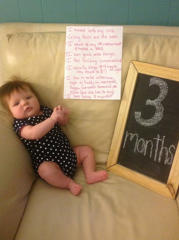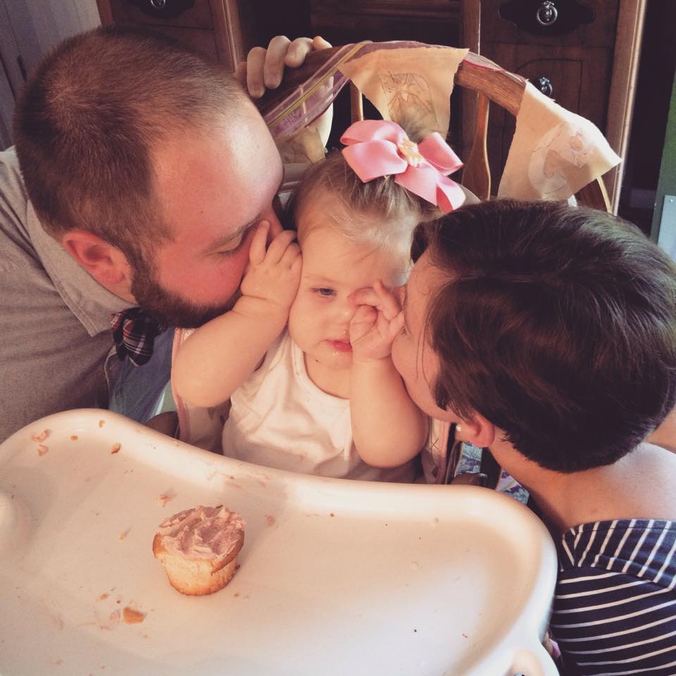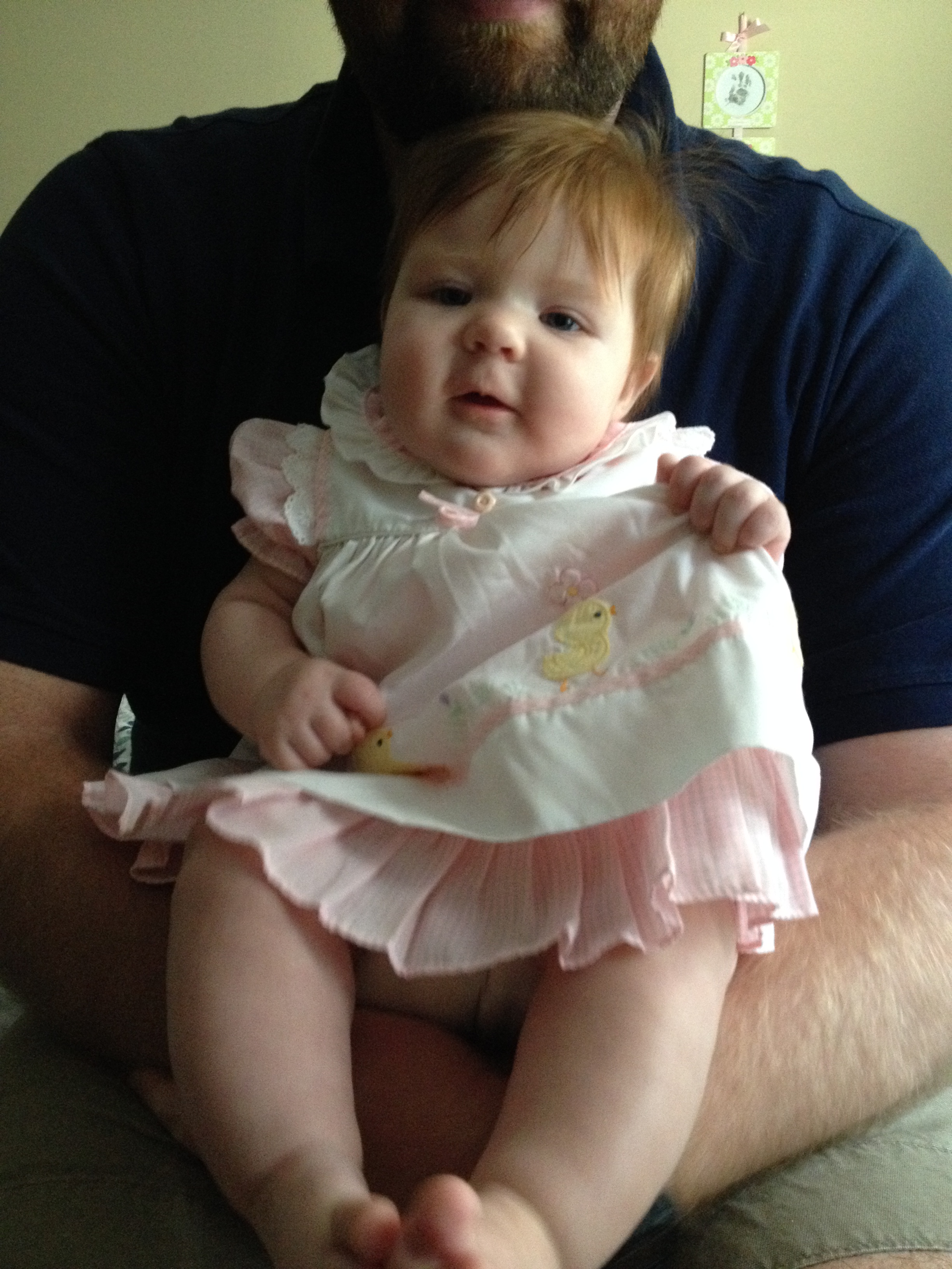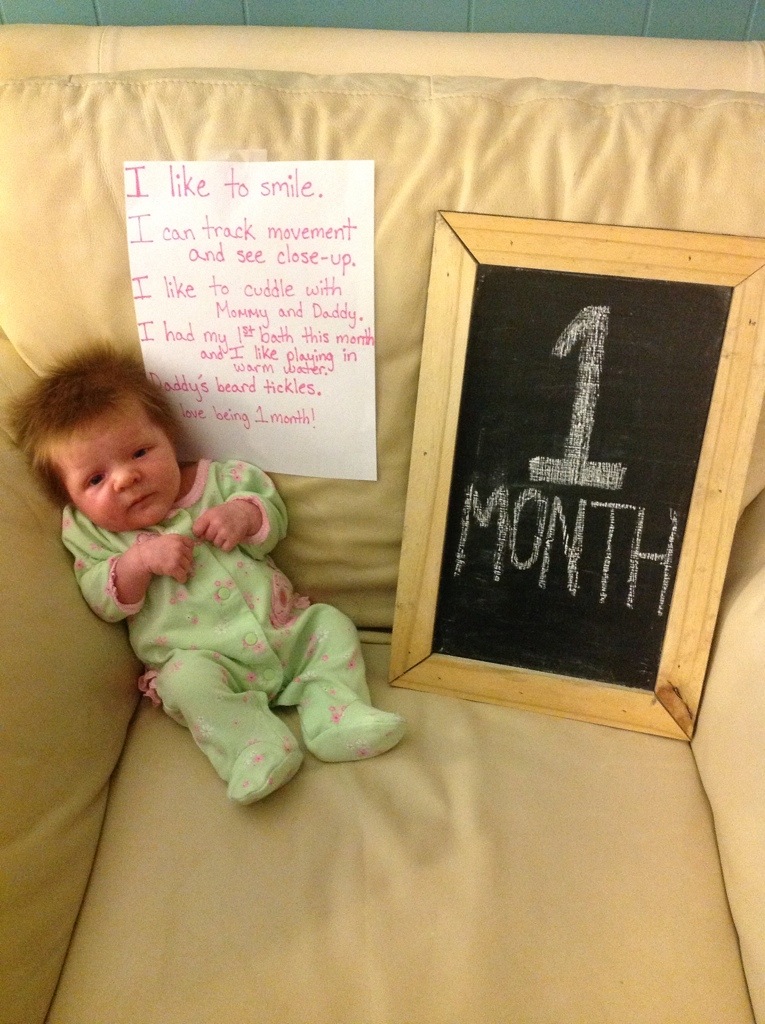 Ms. Connie called roll and David and Alicia came back to stand next to me. When they were ready (which unbeknownst to me they had started the surgery) and they lowered the sheet so that I could see (keep in mind, from my vantage point, I have a bowling ball on my stomach, so I’m spared seeing my own blood and guts) and I saw them pull her out of me. It was the most surreal, wonderful, amazing moment. I was crying happy tears before they even lowered the sheet and I lost it when she came out screaming. I think I said “hey baby.”Miss Ellenor Beverly was born at 7:44am and she was perfect at 7 lbs, 5 oz, 20 in. long. I got to hold her skin-to-skin after a few minutes while they checked her over. She laid on my chest for 20 minutes or so then they were going to take her out of the room with David to do the APGAR tests and all that jazz. I was SO thankful that Alicia stayed with me while I was getting stitched up. Then I was wheeled into recovery where David handed me back Ellenor and Ms. Connie helped me with breastfeeding (cue nausea), but Ellenor latched on immediately like a champ and that’s been an easy road for us.