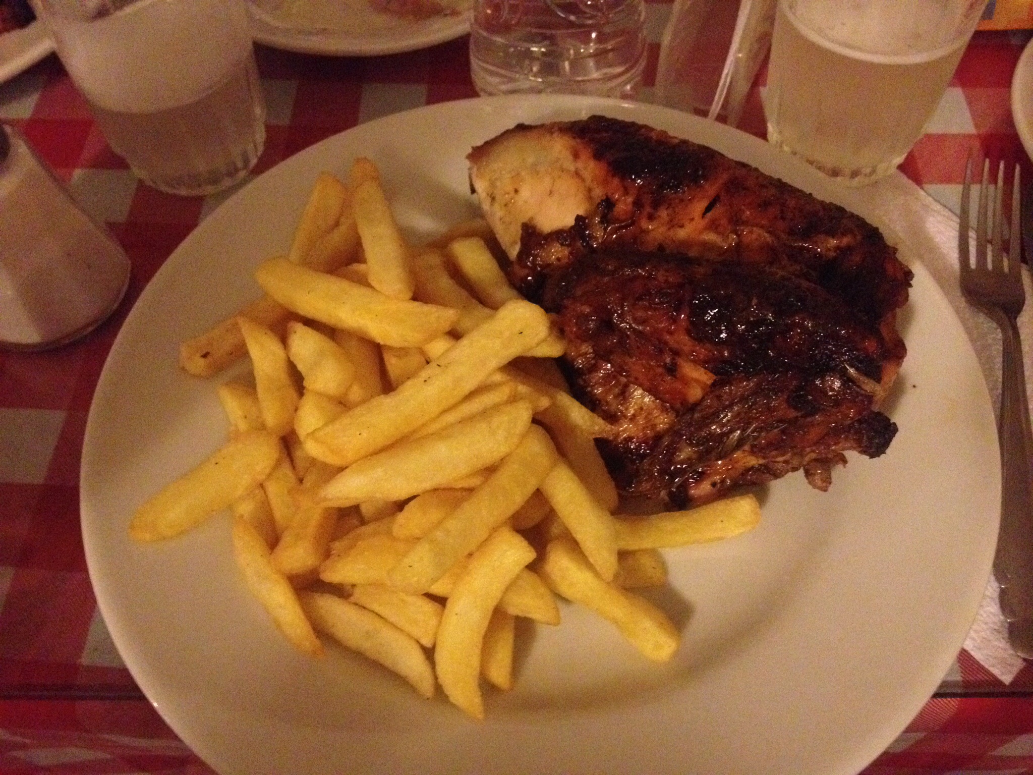 The best polleria in town: Los Toldos…1/4 roasted chicken + fries + salad + choice of drink = 13.50 Peruvian soles = approximately $3.75 USD